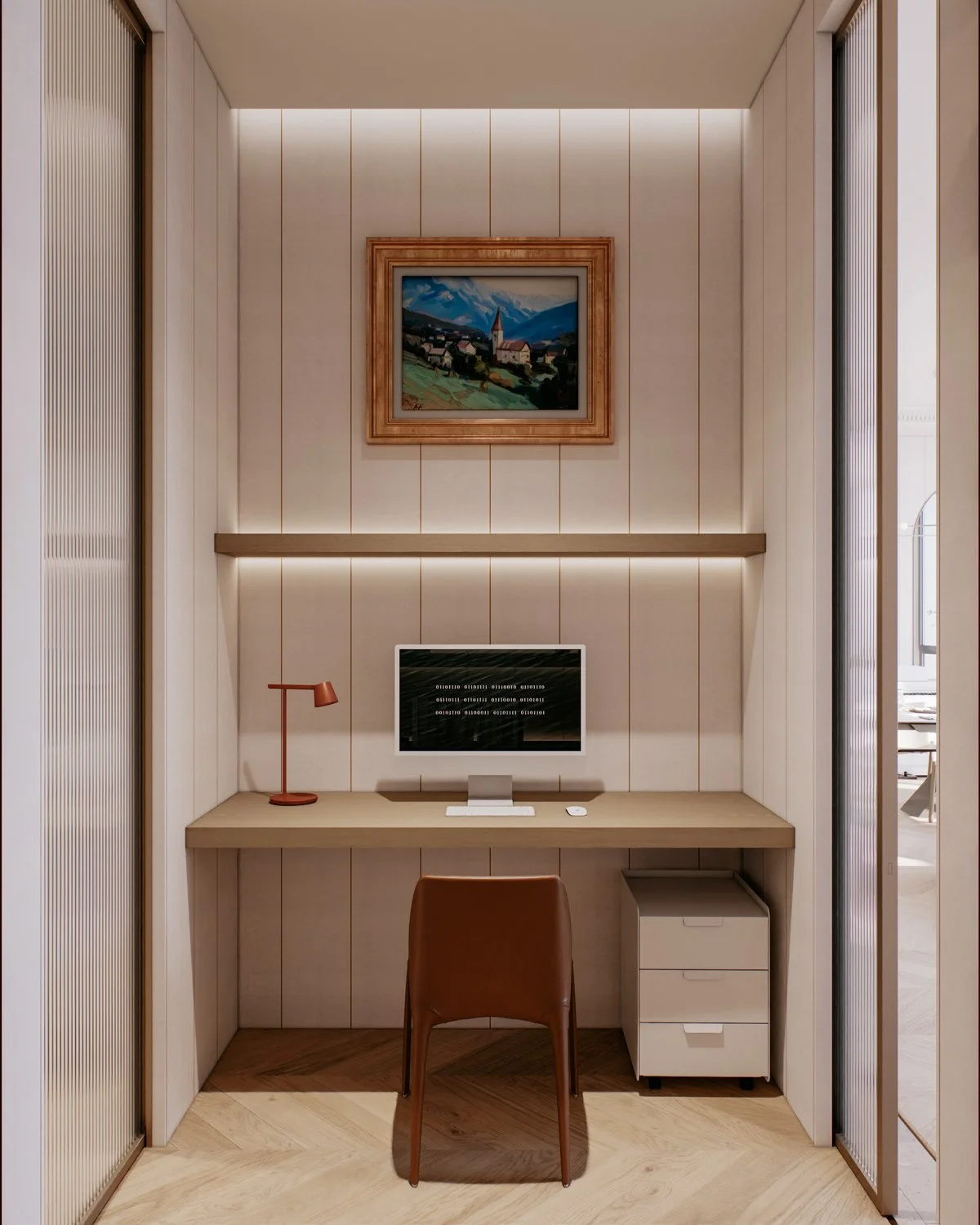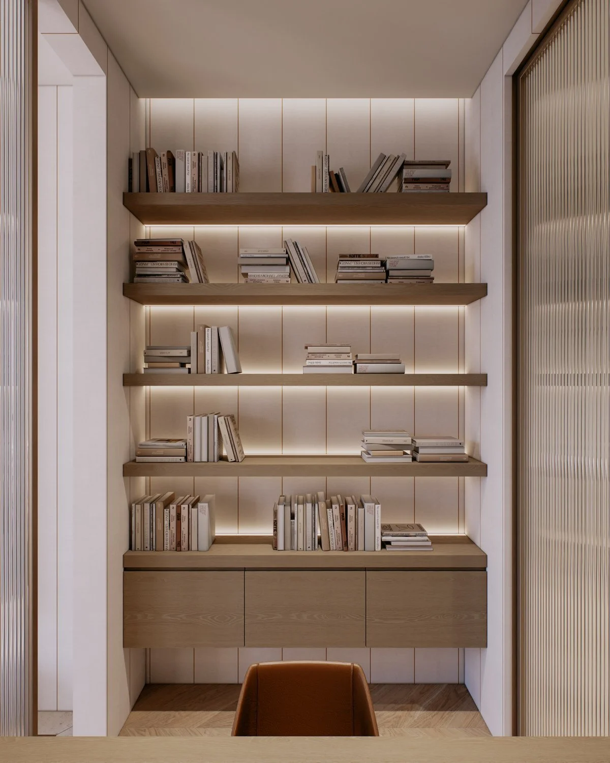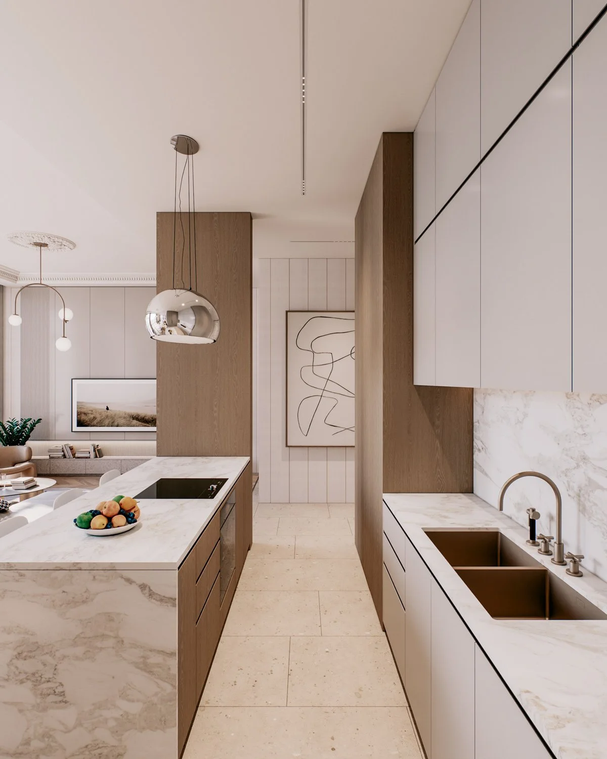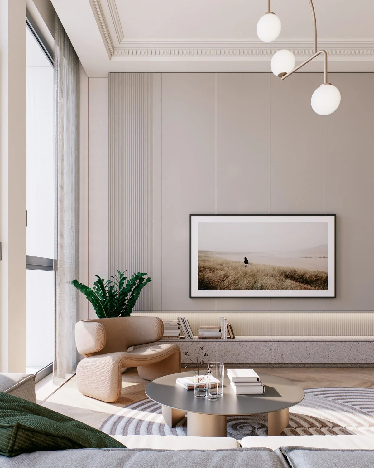 A family of two with three children bought a new apartment to be designed from the ground up. The family wanted a modern elegance concept with soft and warm colors. Four bedrooms, a small working space, and an open living, dining, and kitchen in a total of 156 sqm.